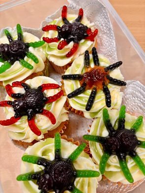 Spooky times call for social enterprise and we never miss an opportunity for creativity. As you can see from this priceless reaction below (!), the students of the Den baked and decorated some frightening treats and got arty with beads….
