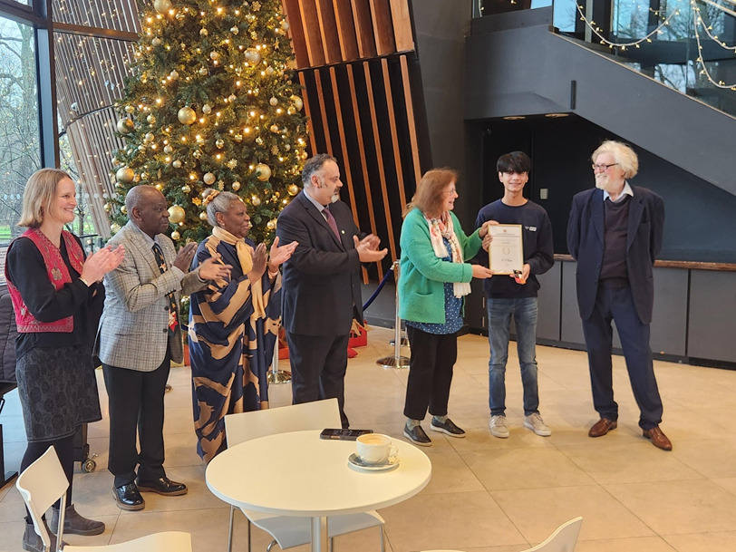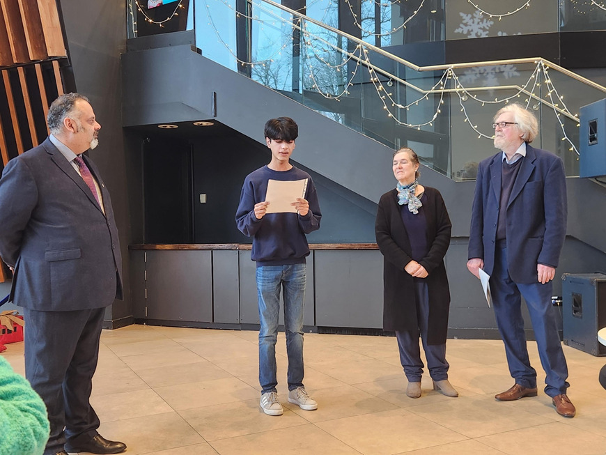 Ali made up that strong participation from the United Kingdom and was a gold finalist, the first time anyone from Wales has achieved this. He was presented with his award at the Royal College of Music and Drama by a host of literary experts along with MS Julie Morgan.