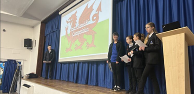 - Delivering presentations in Year 7 and Year 8 assemblies to promote the upcoming Eisteddfod competitions. Their confidence and passion for Welsh culture and the Welsh language shone through, inspiring younger pupils to get involved