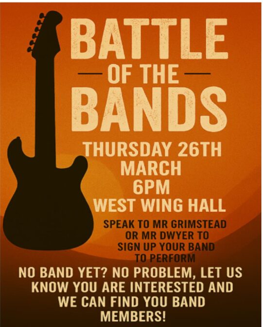 Following last years’ success, we are bringing the Battle of the Bands back, and turning the amp up to 11 to make it bigger than ever! This year it will be on Thursday 26th March, 6pm in the West Wing Hall. Anyone can sign up to be in the gig, whether they are in a band currently, or need our support to be manufactured into a new band. And, there are slots available for anyone who would like to be in a staff band. Will a new super group emerge to challenge ‘Late to Reg’….?!