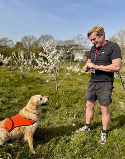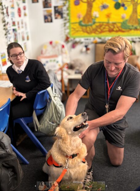 Within his week he has timetabled slots with the students from the Grove, our nurture provision, our autism base and our hearing-impaired resource base. He also welcomes students to our well-being garden where he interacts with them and plays with them. His favourite thing to do is to dig holes in the garden. I’m sure this dog actually smiles!