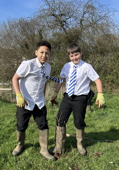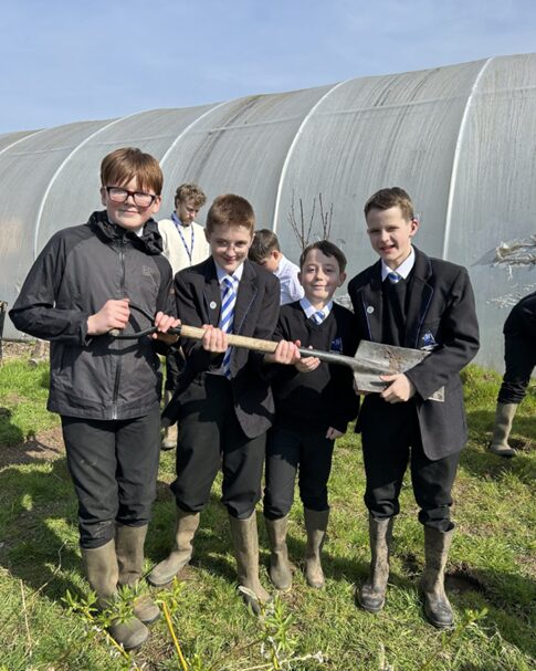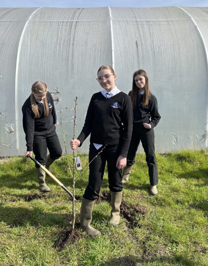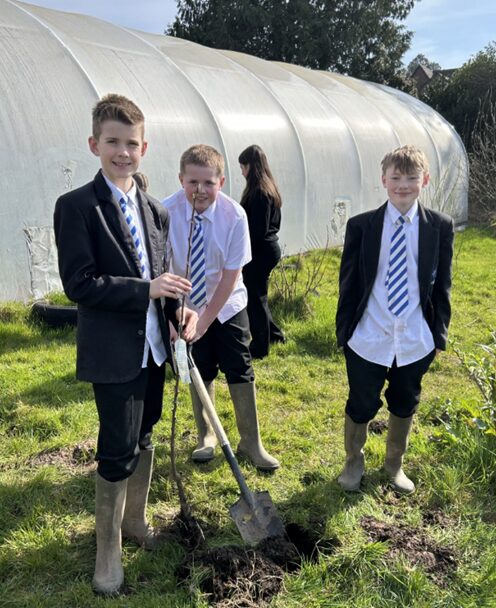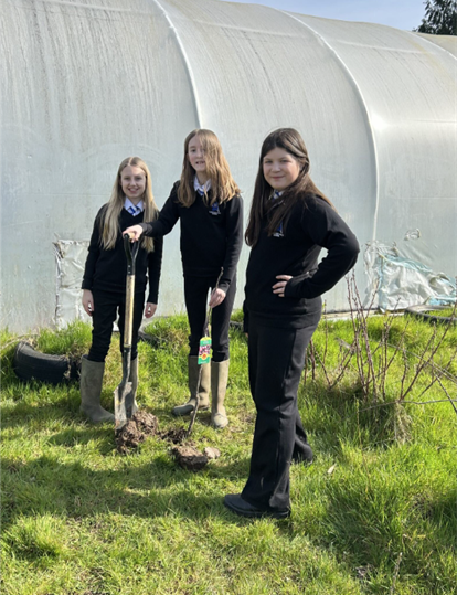 With Mr Winters keeping a close eye, they planted a range of tree species alongside the pathway of the back field (Alder, Birch, Cherry, Hawthorn, Hazel, Rowan, and Spindle) and also a selection of Welsh heritage species alongside the polytunnel. These included Snowdon Queen Pear, Cariad Cherry and Denbigh Plum. My mouth is already watering!